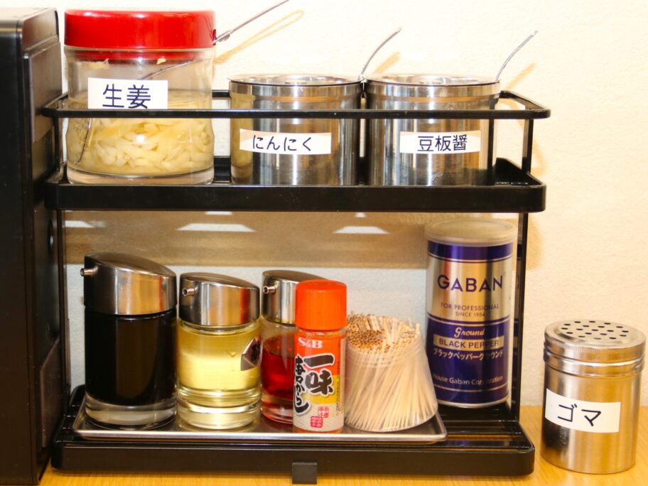 卓上には調味料が一通り揃いますが、キーマンはショウガ。太めの千切りを入れると、スープの味を壊すことなく、後味をさっぱりさせてくれます。