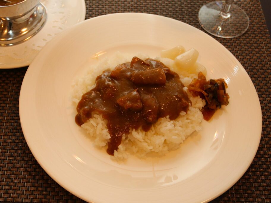ルーはご飯にぎりぎり絡むくらいの粘度。重すぎず、軽すぎず。昭和の初めから令和まで、日本人に好まれてきたカレーでしょう。