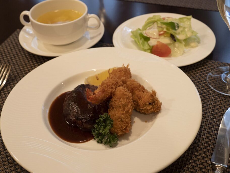 ランチもディナーも定番の洋食をメインとしたセットやコースがあります。パンやライスをミニサイズのカレーライスやハヤシライスに変更できます。