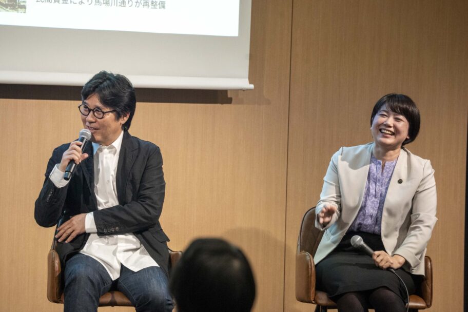 まちづくりに情熱を燃やす田中さんに対して、小川市長は冒頭、「けんかしたのは2016年でした」と爆弾発言をして会場を驚かせた。イベントにかかる予算執行の方法をめぐって対立があったことを紹介しながら、太陽の会の設立やアーバンデザインの策定を例に、仲間を増やし市民を巻き込んで進める姿勢を高く讃えた。
