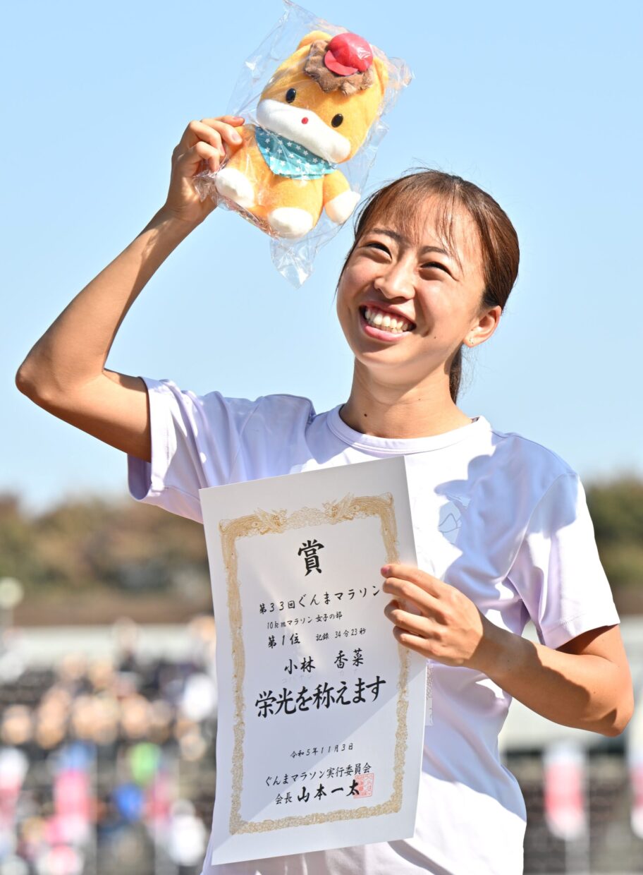 ▲ぐんまマラソン女子10㌔で連覇した小林選手=2023年11月・上毛新聞社提供
