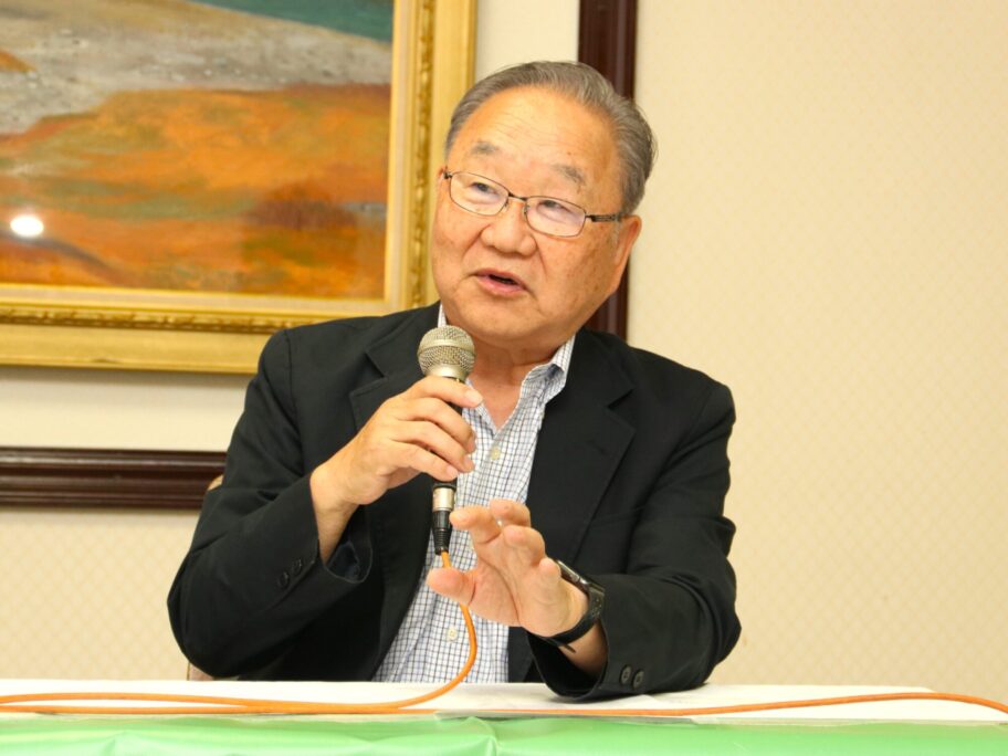 ▲「宇留賀さんを虎視眈々と狙っていた」と打ち明ける小島前代表理事
