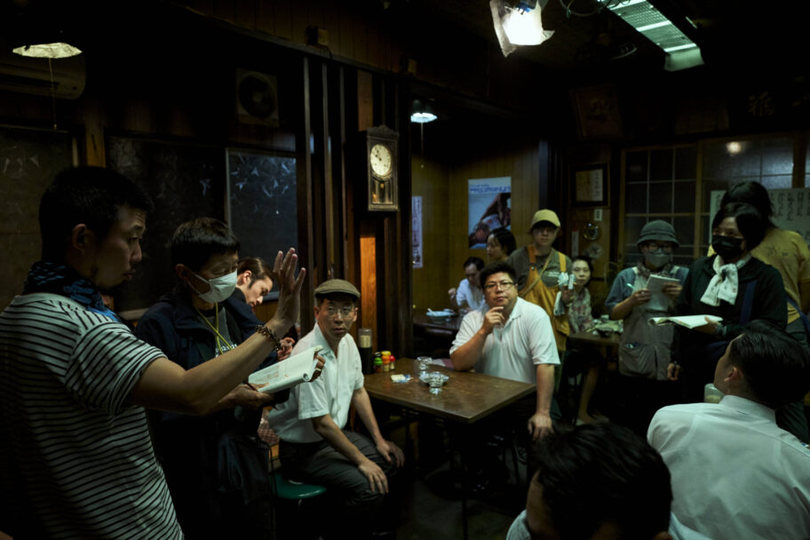 問屋町にある「泉食堂」では、映画の冒頭の見せ場となる場面。警察官たちが大掛かりな一斉摘発を決行する前に待機しているシーンを撮影しました。