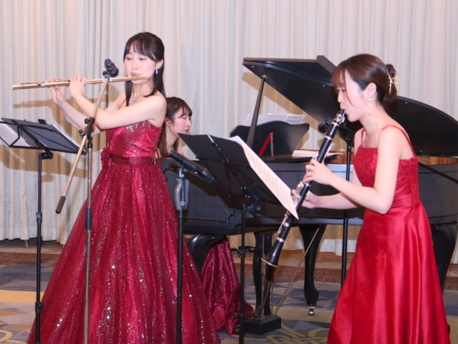 総会後は群馬県を拠点に活動する地域密着型音楽ユニット「キリトモトリオ」がミニコンサートを開いた。フルートの木村ひかりさん、クラリネットの橋本栞柚さん、ピアノの黒沢真木子さんが『情熱大陸』など4曲を演奏した。