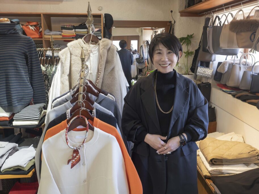 パーソナルコーディネーターの資格を持つ小和瀬さんが店に立つ。お客様の個性に合わせて洋服を提案する頼りになる存在だ。