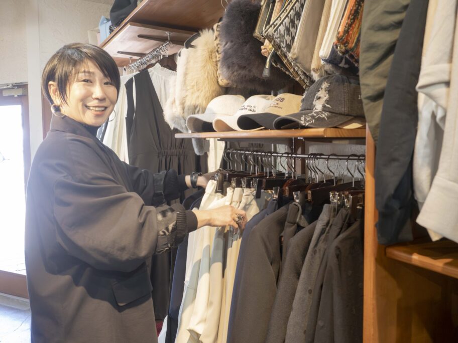 小和瀬さんはかつて市内のセレクトショップで13年間勤務。その後、別の仕事に就いたが、「あなたがいなくなって洋服を選べなくなった」という元常連客の言葉に背中を押され、2014年にミミクロージングを開いた。ファストファッションとデパートの間を狙った価格帯と、人と被らないデザインが店の軸だ。