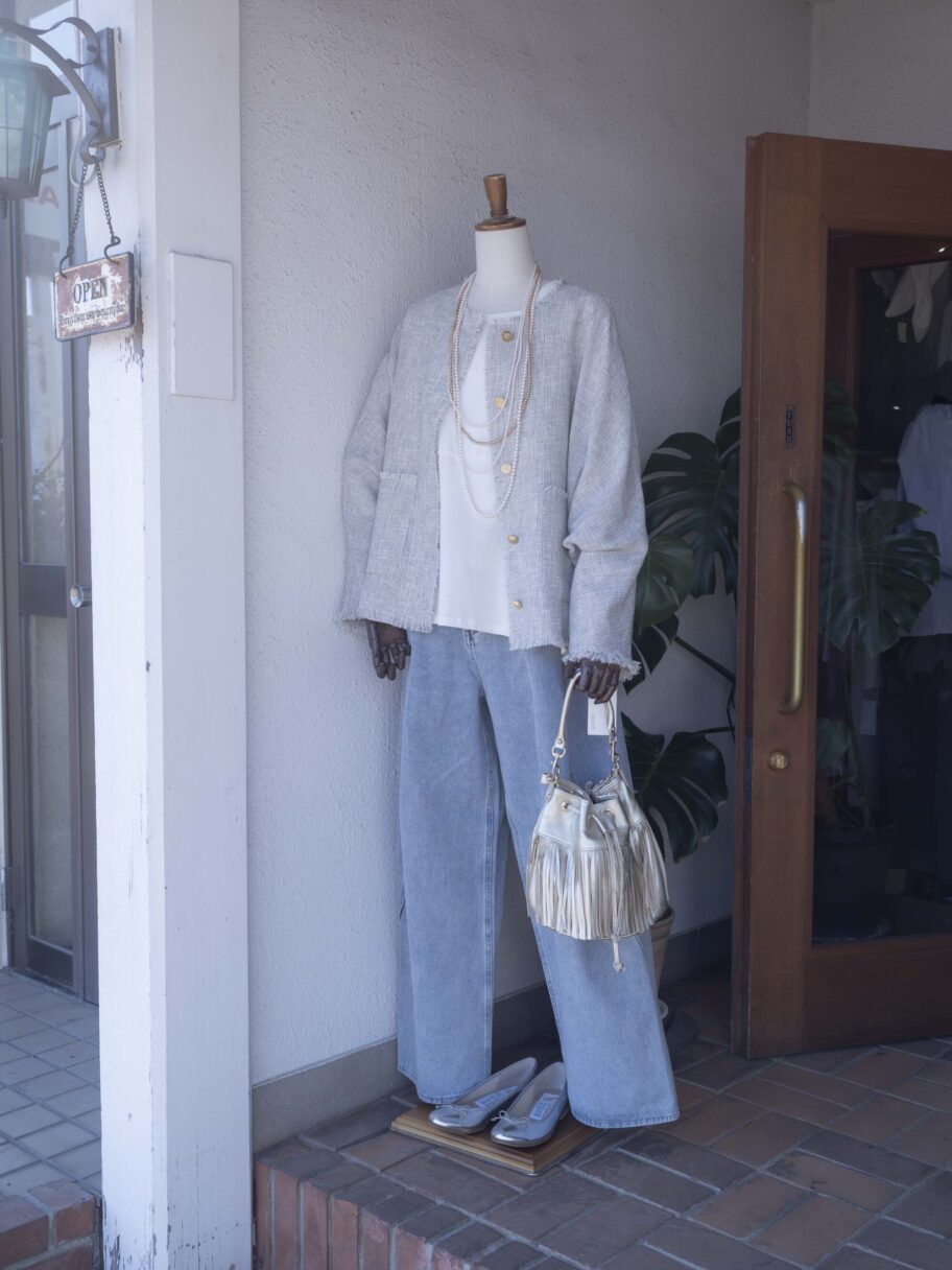 ▲この日のマネキンは軽い素材のジャケットとデニムの組み合わせ