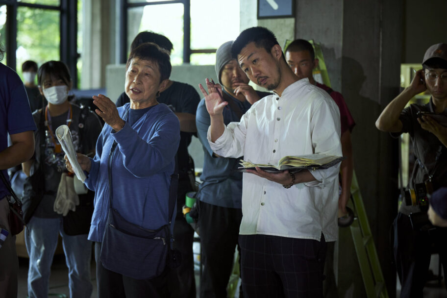 ▲撮影監督の芦沢明子さん(左)と打ち合わせをする飯塚監督
