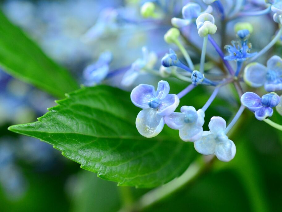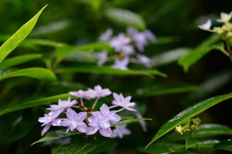 園内に一歩足を踏み入れると、雨に濡れた木々の葉が光沢を増し、森の中に漂う澄んだ香りに、思わず深呼吸したくなります。木々も植物もなんだか、うれしそうに見えます。そして、雨がよく似合う「アジサイ」が咲きだします。