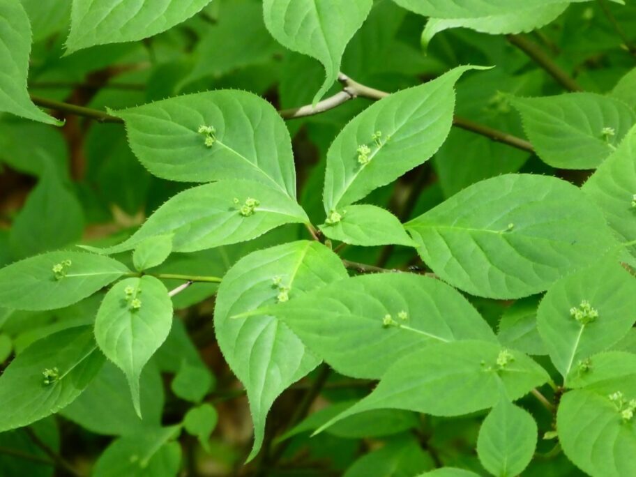 葉の上に花、ハナイカダ