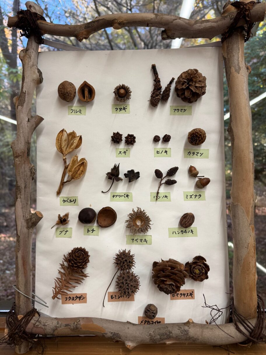 冬の森を歩くと、足元にはさまざまな木の実や種たちが顔を出しています。マツボックリ、カラマツ、クルミ、ドングリ、トチの実…。園内で拾い集めた自然素材を使って、世界にひとつしかない『森のリース』を作りませんか?