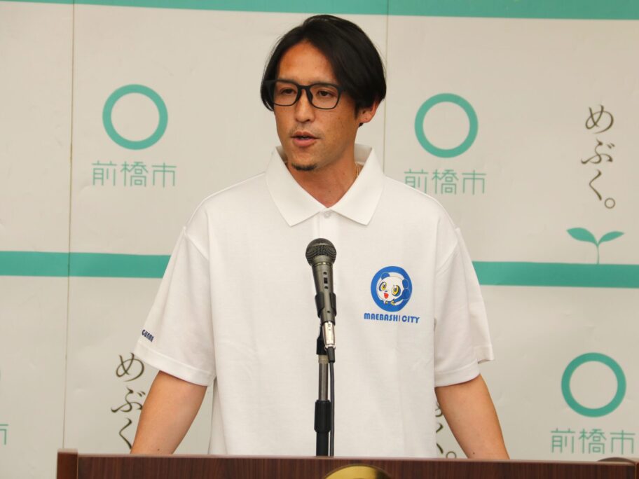 前橋市役所で6月13日に開かれた市政記者会見に出席した細貝氏は「満員のスタジアム、最高の雰囲気の中で選手を戦わせ、勝利をつかみたい」と来場を呼び掛けている。