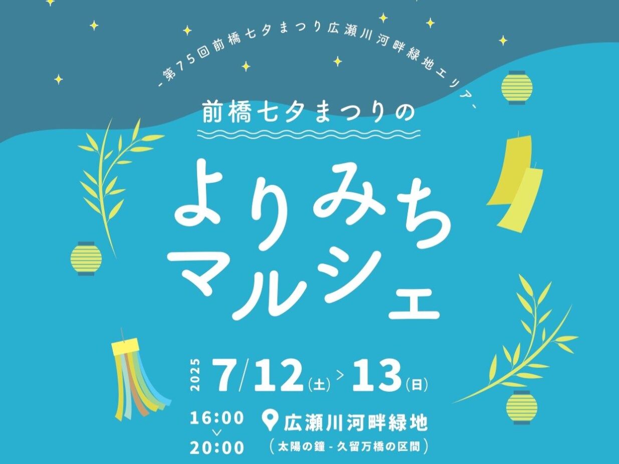 前橋七夕まつり(7月11日~13日)に合わせて、祭りの喧騒から少し離れた広瀬川河畔でのんびりする「前橋七夕まつりのよりみちマルシェ」が12、13日の夕方から開かれる。普段できない太陽の鐘をついたり、冷たいビールを飲みながらライブを楽しんだり。ちょっと、「よりみち」しよう。