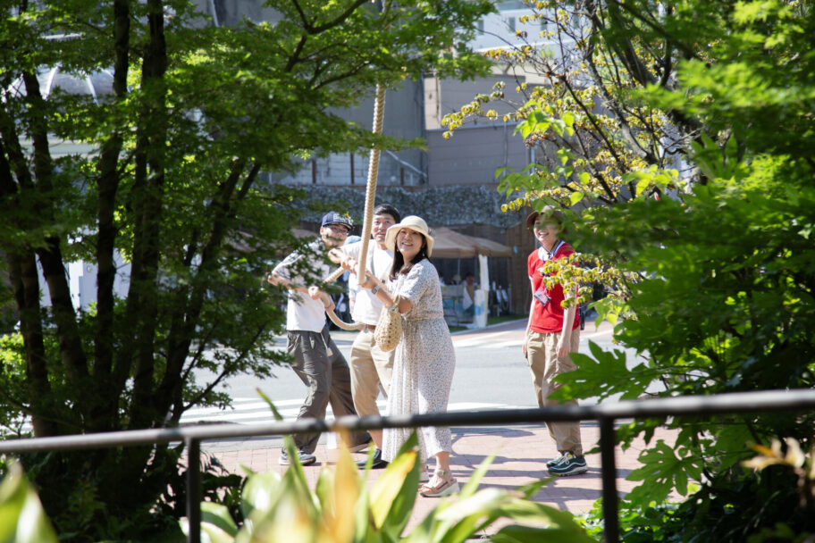 太陽の鐘の鐘つきは16時から17時まで。アーティストやDJのライブは久留万橋近くで開かれる。