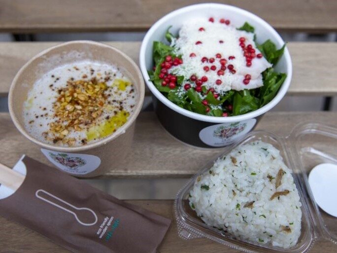 ▲モアスープのスープやおにぎり