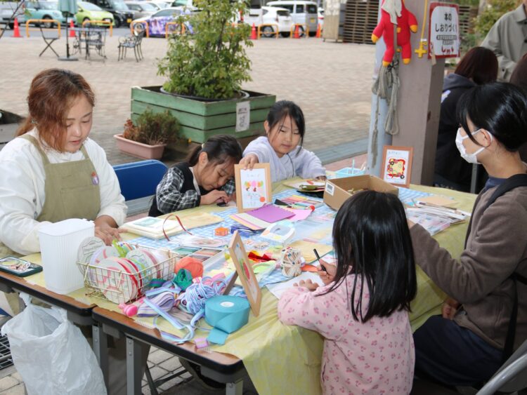 本のしおり、ポストカードの制作といった体験型のワークショップも人気を集めた。商店街の店先では絵本や関連グッズが販売された。