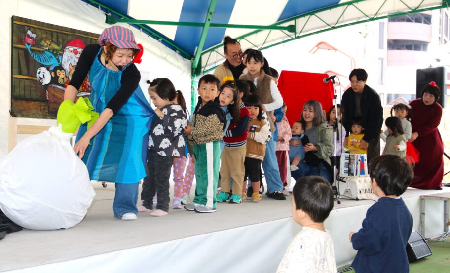 ▲たこさんとりんちゃんのライブは子供たちも参加した