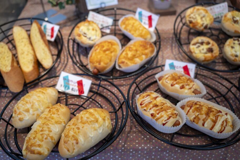 同じく7時開店の「パンコロリン」は、毎日50種類以上のパンが並び、通勤・通学客も立ち寄る身近な存在です。