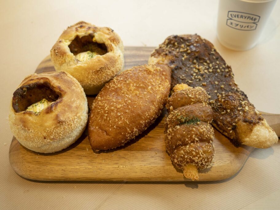 「エブリパン前橋店」は川原町のジンズパーク内。カリッじゅわ塩パンやカレーパンが人気で、通りすがりの人まで振り向かせます。パンが街を動かしています。