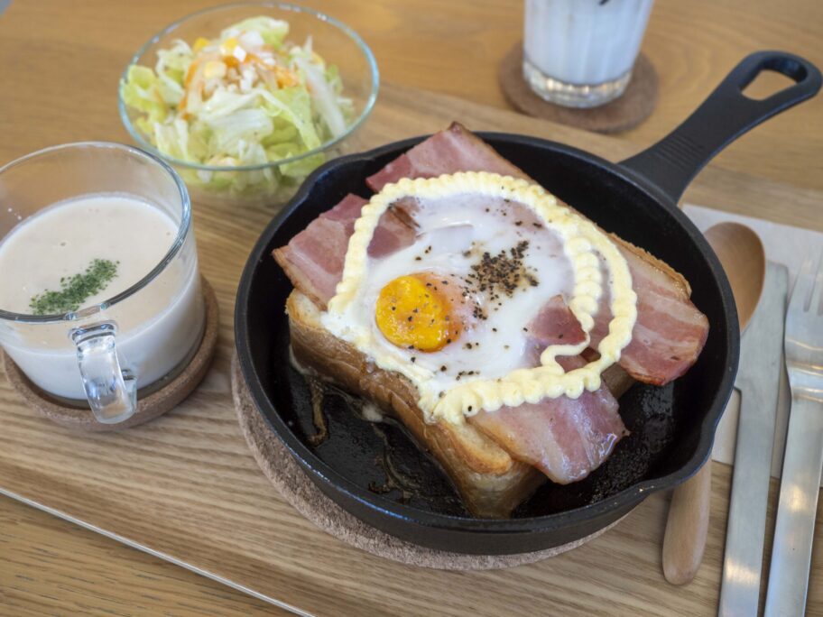 前橋こども公園前の「ラ・セーヌドゥ・レーヴ」。緑を眺めながらクロックムッシュとコーヒー。ただそれだけで、良い一日になります。