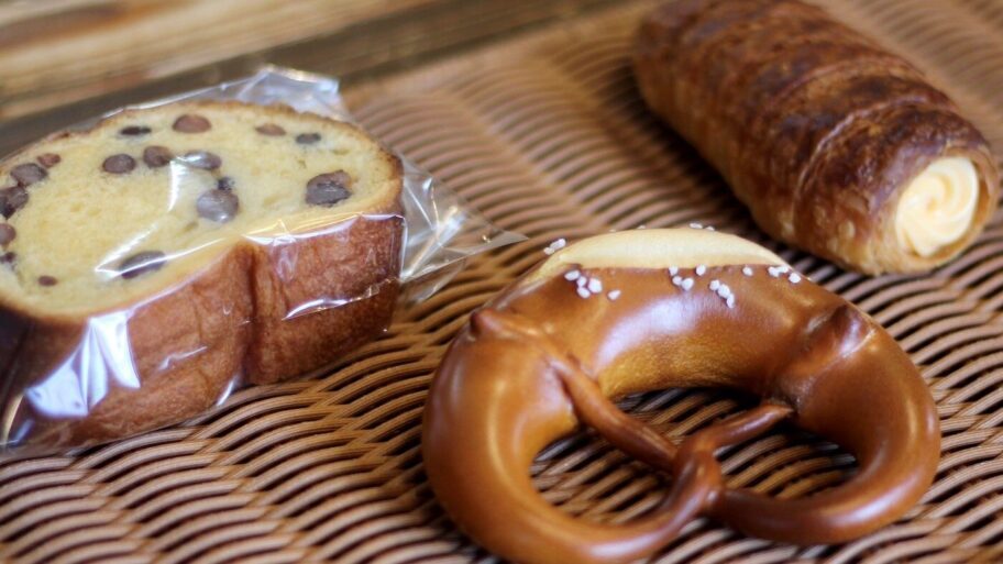 「ぱん卓」では、プレッツェルがひそかな名物。太い部分はむっちり、細い部分はポリポリと異なる食感です。