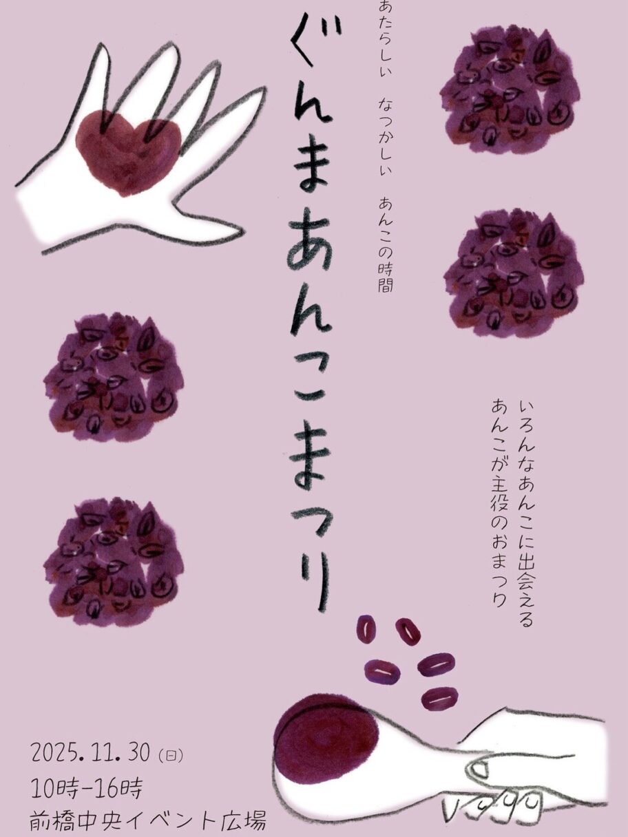 群馬の和菓子文化を次の世代につなぎたい――。そんな思いから生まれた「あんこ」を主役にしたイベント「ぐんまあんこまつり」が11月30日、中央イベント広場で開かれる。和菓子屋やカフェなど11店が参加し、粒あん、こしあん、白あんなど多彩なあんこ菓子が並ぶ。世代を超えて愛されるあんこの奥深さを味わえる一日になりそうだ。