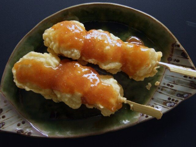 から揚げ以外では、みそぽてと本舗の「みそぽてと」は必食。ふかしたジャガイモの天ぷらに甘めの味噌ダレをかけた埼玉・秩父のソウルフードだ。