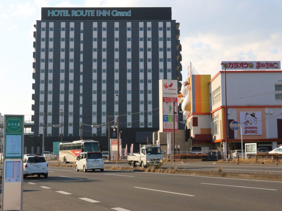 地上12階建て、客室は243室で市内最大級。「Grand」はルートインの中でグレイドの高いブランドで、県内では太田駅前に次いで2カ所目となる。