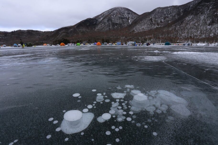 赤城大沼の冬の人気レジャー、氷上ワカサギ釣りが1月15日午前7時から解禁される。氷の薄い一部地域を除いて穴釣りを楽しめる。秋のボート釣りは釣果がよく、氷上でも大漁が期待できそうだ。