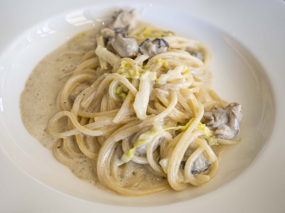 国道17号を入ってすぐに現れるのが、プールのあるバー&グリル「チェント」。2004年のオープン以来、非日常的な空間でクオリティーの高い料理を味わえると人気のイタリアンレストランだ。ランチでオススメなのが「フェリーチェ」。前菜からパスタ、メイン、デザートまで付くコースで、満足度は高い。
