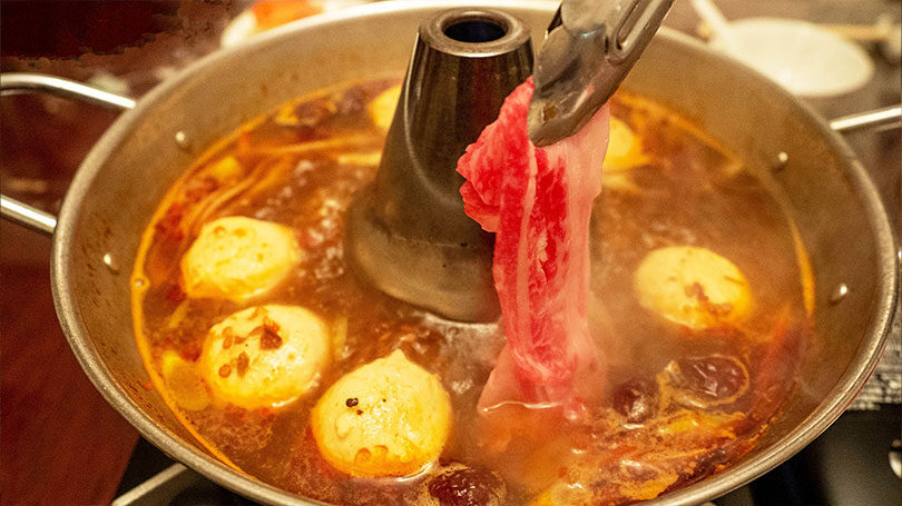 ▲辛そう、でもそれほどでもありません。麗華齋の火鍋