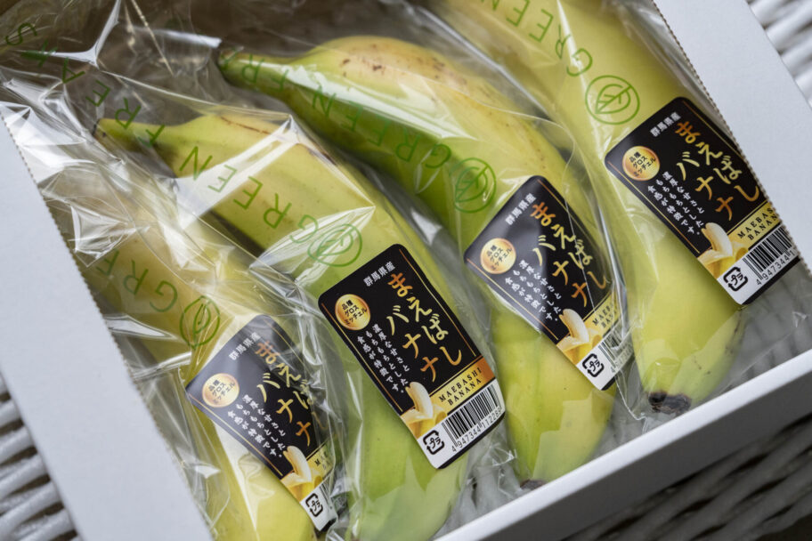 ▲道の駅で栽培されるまえばしバナナ。濃厚な甘さ