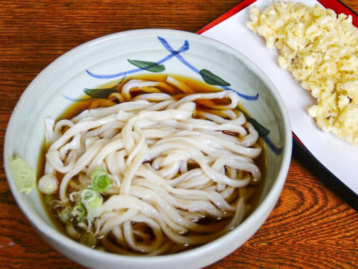 150㍍ほど離れた「三度力丸店」は弟の雅之さんが切り盛りする店。ぶっかけが主力で、冷たいメニューだけでも12種類。冷やしトンカツや冷やし肉天など遊び心のある一皿も並ぶ。