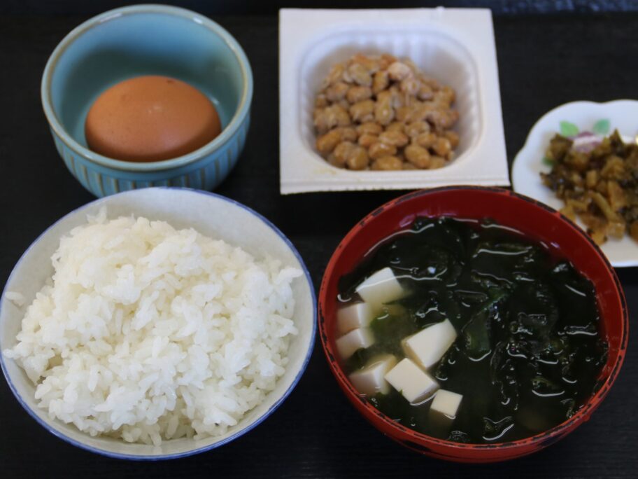 おにぎり専門店の福ごはん 皆笑フは朝食にベーコンエッグの付くいつもの朝ごはん(500円)と至福の卵かけご飯(400円)を提供します。