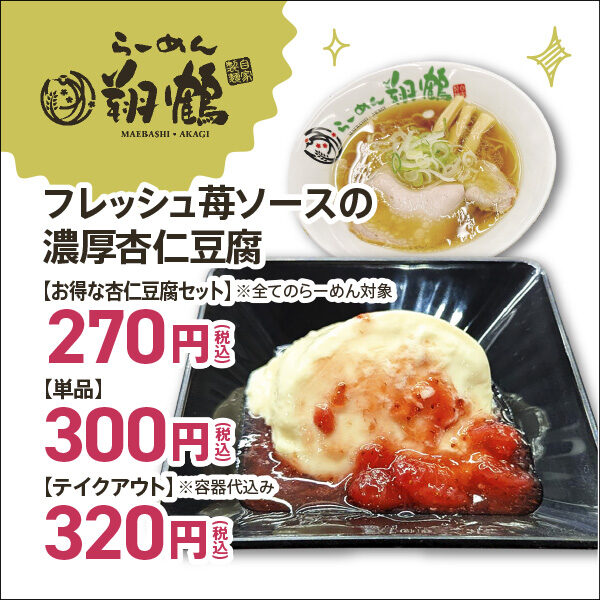 変わり種としてはらーめん翔鶴の「フレッシュ苺ソースの濃厚杏仁豆腐」、ROCCOの「やよいひめとクリームチーズのサラダ」はいかが。