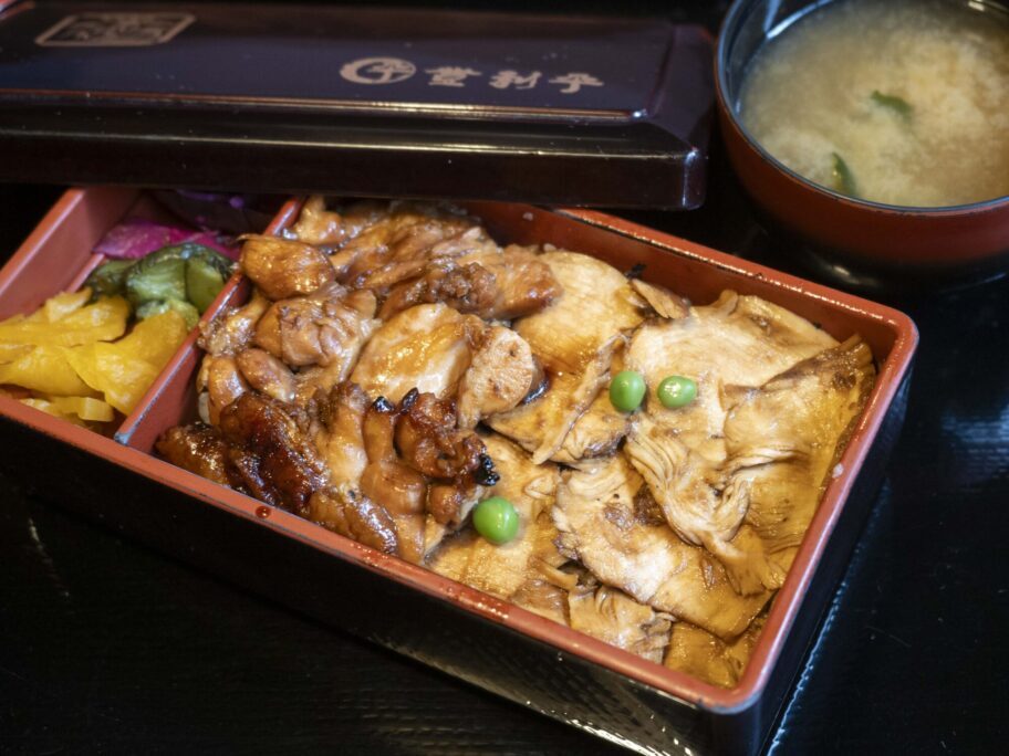 ▲店内用の鳥めし松重。漆塗りのお重で出てくる