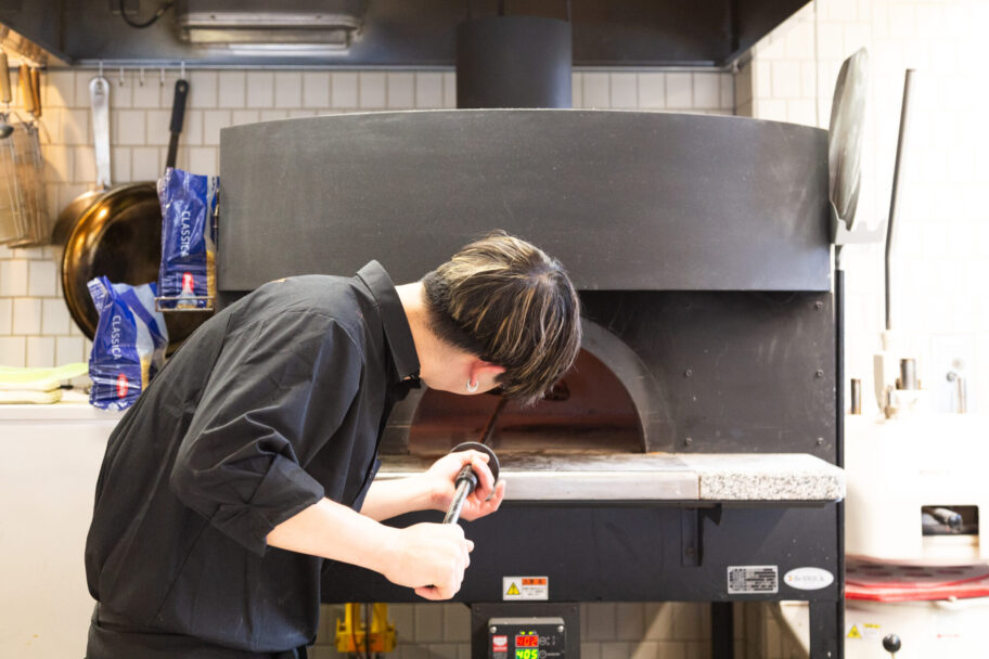 前橋中央通り商店街の南端にある「PIZZERIA PESCA! 前橋まちなか店」。店長の森勇太さんは、大学時代に六供町本店でアルバイトを始めて以来、12年間PESCA!一筋。スタッフへの細やかな配慮を大切にする社長の姿勢と、会社の理念「ハピネス」に強く共感したことが入社の決め手だったという。