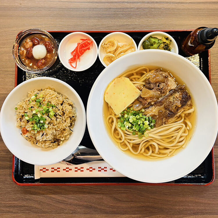 定食メニューは沖縄そばと、じゅーしー(炊き込みごはん)の両方を楽しめる