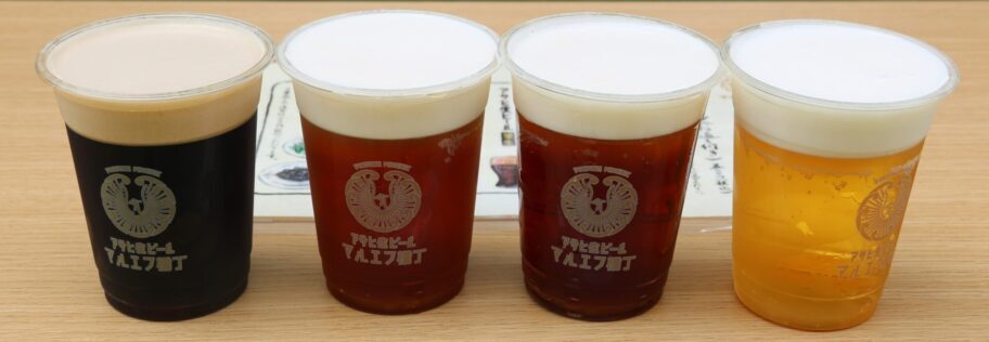 ▲左から黒生、ハーフ&ハーフ、ワンサード、マルエフ