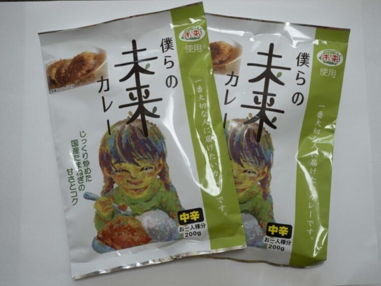 「僕らの未来カレー」という名のレトルトは抗生物質や合成抗菌剤を一切使用しない「えばらハーブ豚未来」を味わえる贅沢で美味しくて安全・安心なカレー。肉は旨味が濃く、すごい弾力。簡単に高級店のカレーを楽しめます。販売は「群馬ミート」。