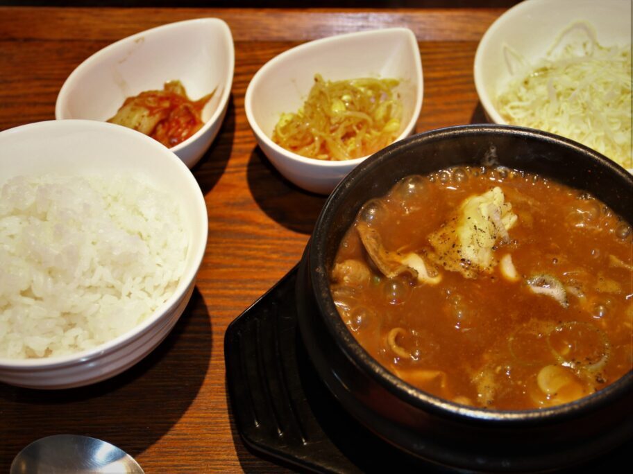 韓国料理の「きむち屋」にはチーズカレーもちゅ煮なる名物があります。石焼きビビンバ用の釜      にグツグツ音を立てて配膳されます。大きなモツは熱くて、旨くて、柔らかで「もちゅ」の名がぴったり。とろけるチーズにもつ煮を絡ませ、熱々のご飯に掛ければ、もうご飯が止まりません。