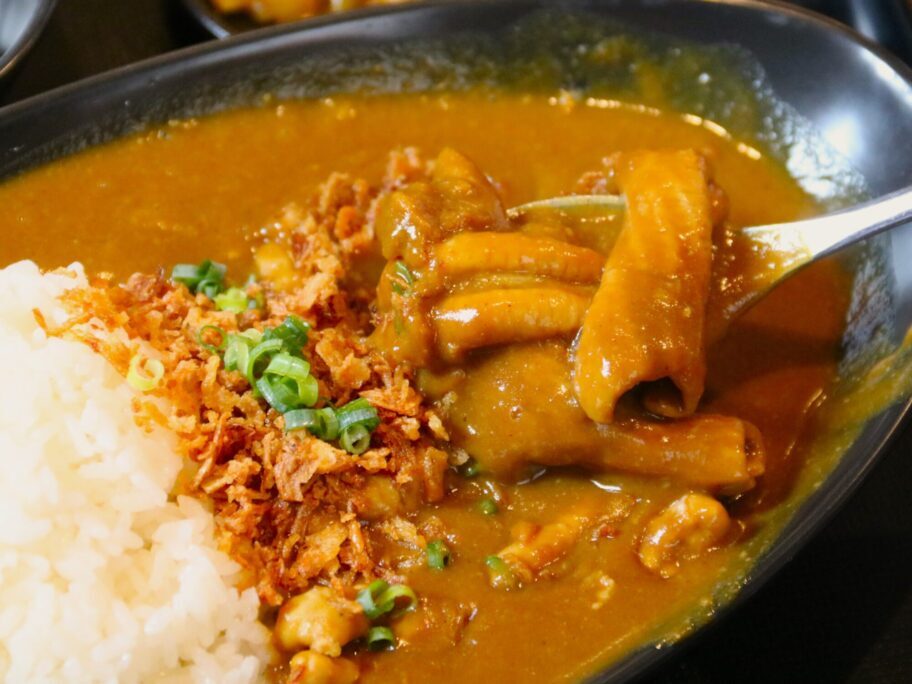 肉料理で上州名物といえばもつ煮でしょう。これをカレーにしちゃったのが「王里-OURI-芳賀食堂」。野菜はすべてルウに溶け込んでいて、具はモツだけ。これが半端なくでかくて、柔らかくて。辛口のカレー味がモツによく染みています。こちらはカレーうどん、カレーラーメンもあります。