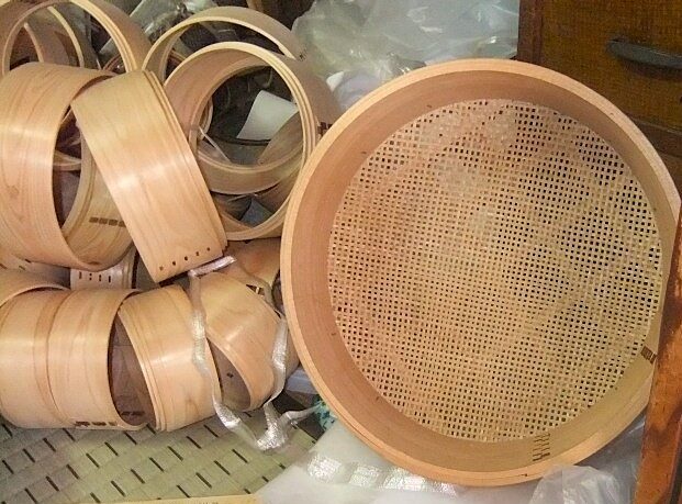中を覗くと、ヒノキの香りが漂い、真新しい篩や蒸篭が所狭しと並んでいた。