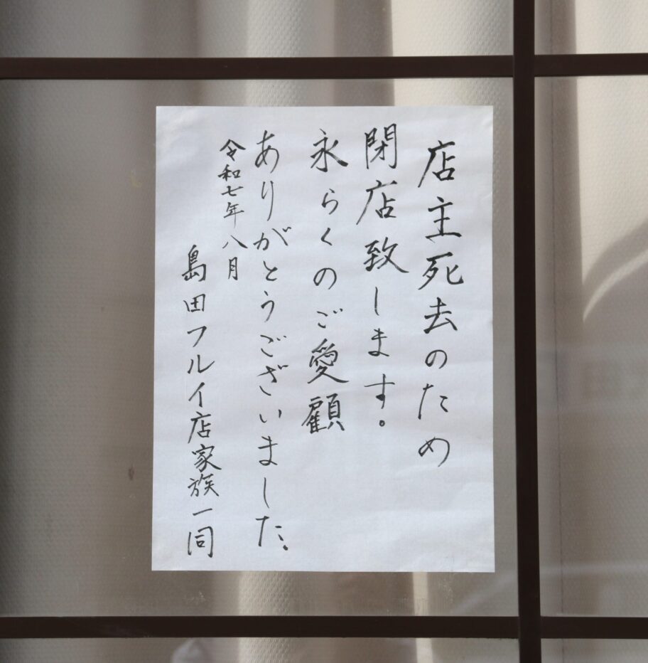 前橋市中心街で篩(ふるい)や蒸篭(せいろ)といった木製の曲物(まげもの)を手作業で製造、販売していた島田フルイ店が8月末で閉店した。4代目店主の島田泰男さんが8月30日、85歳で永眠。1908(明治41)年創業、117年の歴史に終止符を打った。