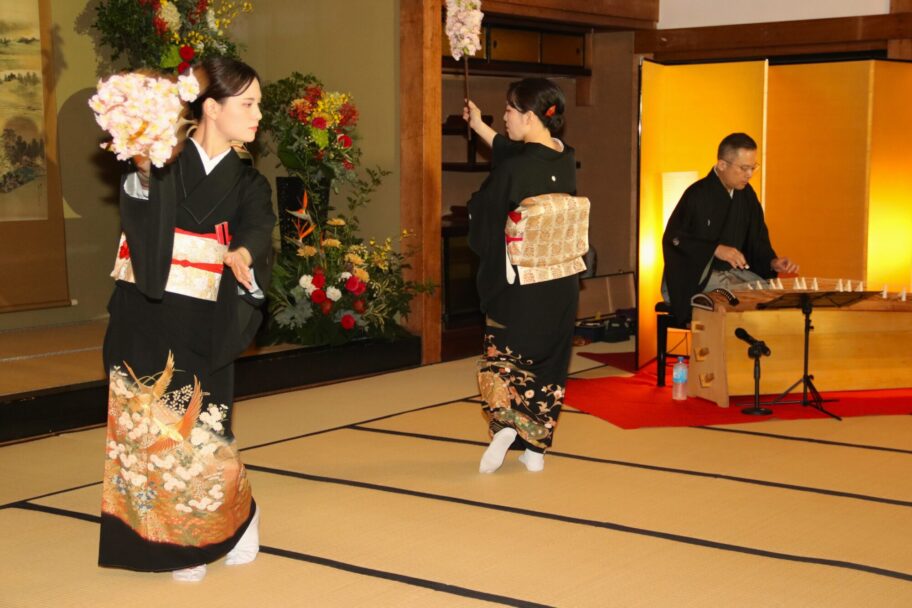 琴の演奏に合わせて日本舞踊が披露され、出席者は臨江閣の重厚な雰囲気とともに優雅な日本のおもてなし文化を満喫していた。