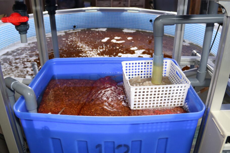 内陸養殖の最大のポイントは水温と水質の管理にある。水温は22度から24度に維持する。