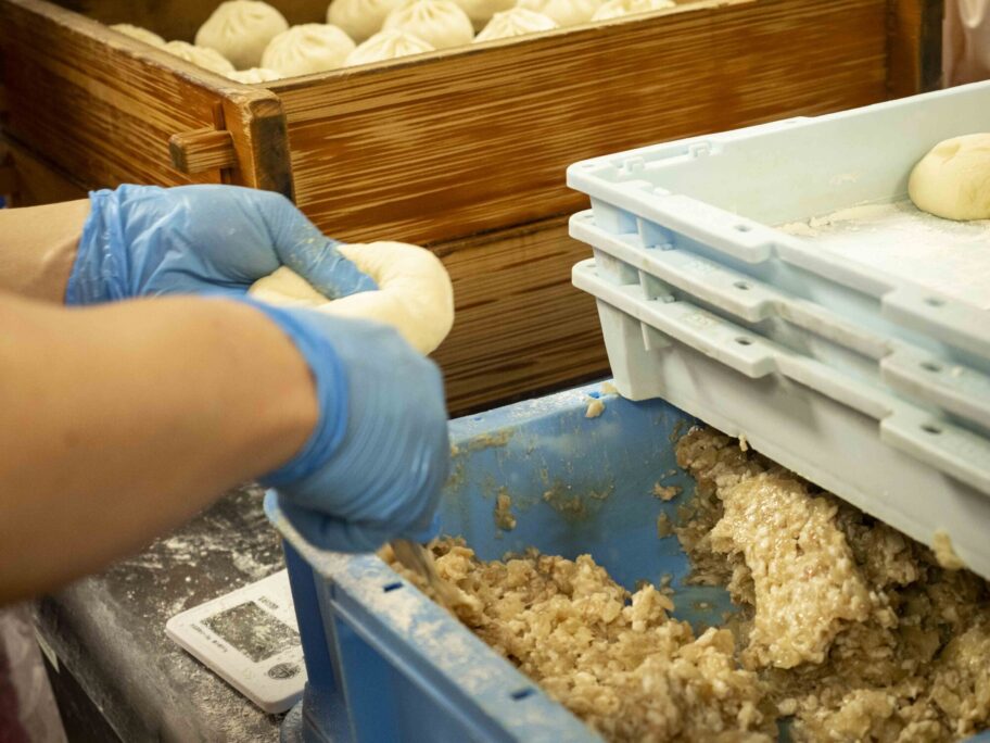最も長い行列ができたのは大阪の超人気店「551HORAI」。大きな豚まんやちまきが巨大な木製の蒸篭で次々と蒸し上げられ、蒸したてを大量に購入していく人が多かった。
