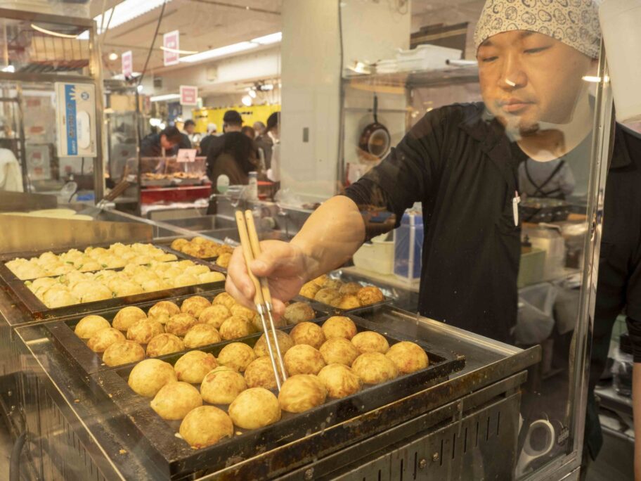 職人が目の前で仕上げる実演販売コーナーはどこも人気。蒸籠から立ち上る湯気に包まれたシュウマイ、こんがりと焼き色がついたたこ焼き、ジュワッと音を立てて揚がる唐揚げなど、出来たてならではの香りと臨場感が来場者の足を止めた。