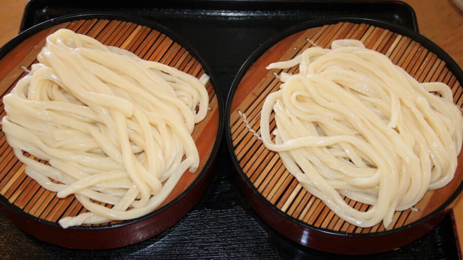 瑞々しいうどんが盛られたせいろは2枚重ねが標準。1枚でも十分の量があるが、あまりにも「うまか」なので、2枚とも完食してしまう。