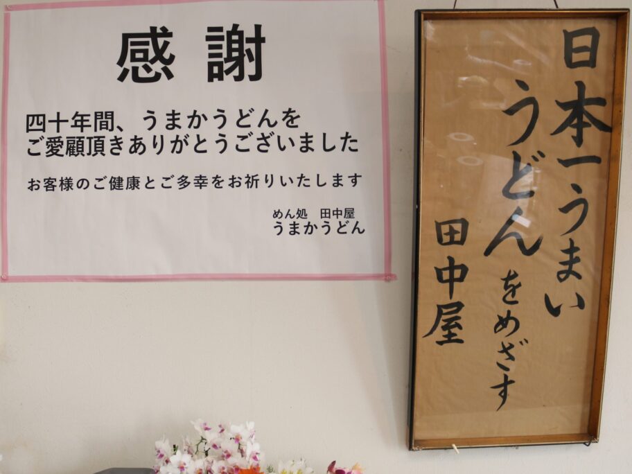 「うまかうどん」の愛称で親しまれた肉汁うどんの「めん処 田中屋」(前橋市総社町総社)は4月10日、40年の歴史に終止符を打つ。現店主が脱サラして店を始めたのが1986年4月11日。節目の日に静かに暖簾を下ろす。